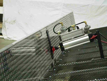 "Besides the improved safety, we had no breakdowns or malfunctions in all 3,970 drops of the gate at the Sao Paulo Worlds," Barker says. "In many contests where heavier steel gates are used, the repair welder is on the starting line nearly as often as the riders to fix gates and ramps that literally beat themselves to pieces." Several elements, from basic design geometry to lightweight materials and an adjustable "cushion" stop for the cylinder rod, combine to make this high-performance reliability possible.