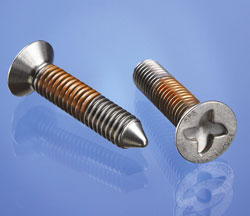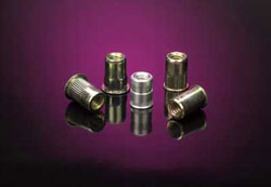 The aluminum, brass, steel, and stainless steel fasteners serve as practical alternatives to tapped holes, weld nuts, rivets, and self-drilling or tapping screws. They can be used in panels of any hardness as thin as .020 in (0.51 mm). Types include half-hex shank low-profile head, rib-wall minimized-profile head, rib-wall low-profile head, thin-wall low-profile head, and swaging low-profile head.
