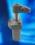 Jergens has introduced a new line of swing cylinders for workholding. The new hydraulically activated clamps are available either in top or bottom flange styles, with either single- or double-acting actions. Either style can be manifold-mounted, utilizing #2 SAE ports, or can be plumbed conventionally through two #4 SAE ports. Three sizes are available, with clamping capacities from 1,100 lb to 5,000 lb. The clamp piston rotates 90° to the right in its standard configuration, but may be ordered with either a 90° left rotation or no rotation.