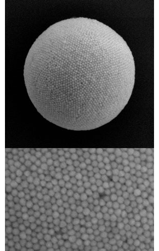 This supraball (top) is 2,100 nanometers in diameter and is made from hundreds of tiny gold nanoparticles (bottom) engineered to boost solar energy absorption. [Credit: Adapted from ACS Applied Materials & Interfaces 2026, DOI: 10.1021/acsami.5c23149]